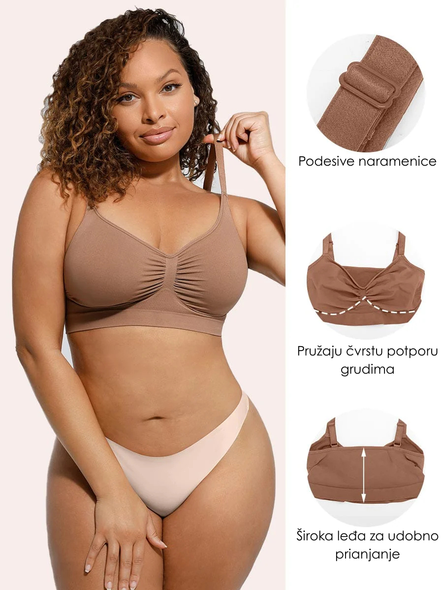 - Dodatna traka ispod grudi: Sprečava podizanje i kotrljanje grudnjaka tokom nošenja.