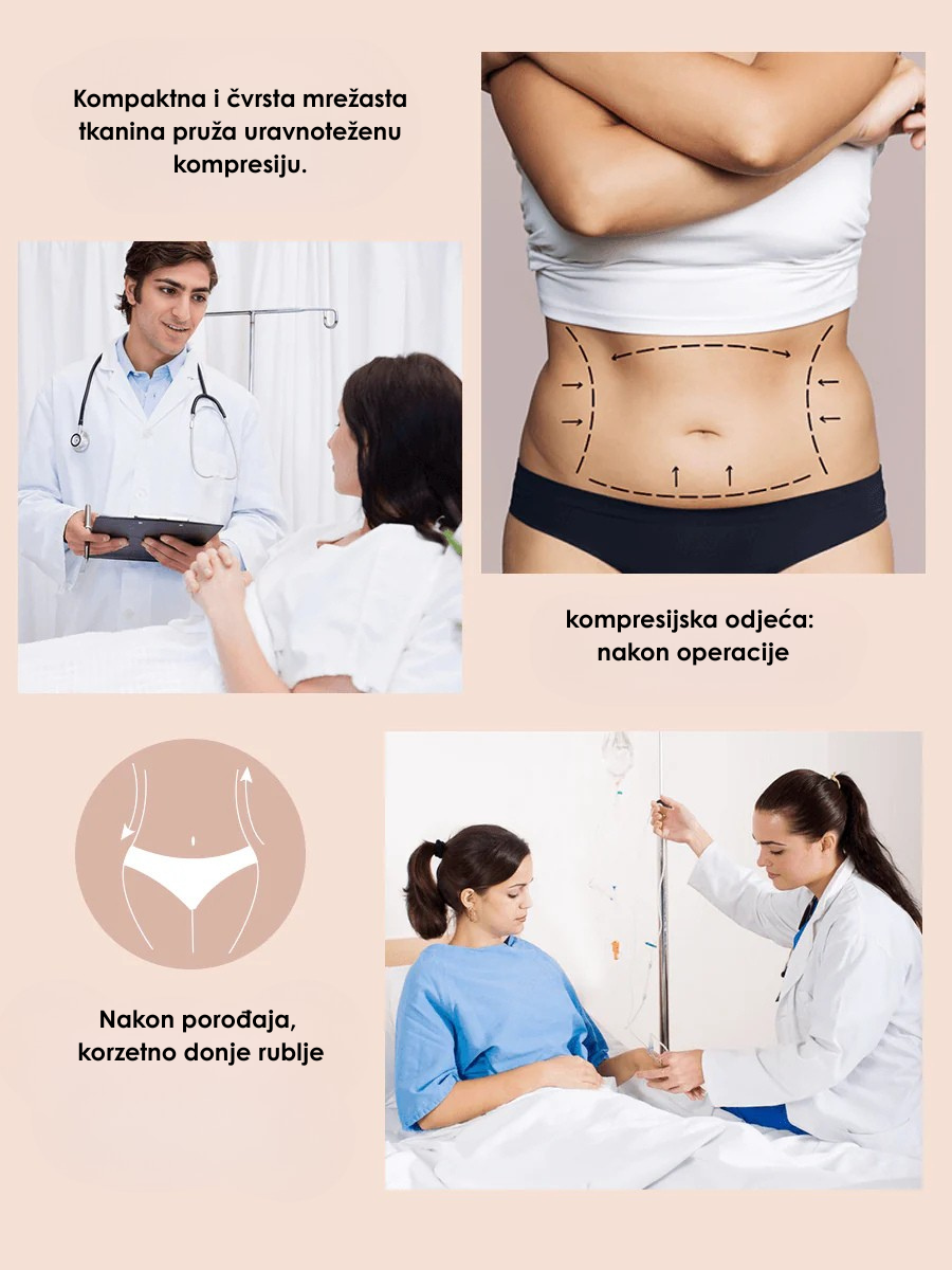 - Trostruki sloj u predjelu stomaka: Povećava stepen kompresije i oblikuje liniju stomaka.